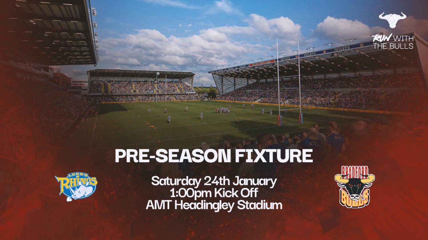 Bradford Bulls can announce we will face Leeds Rhinos at AMT Headingley on Saturday 24th January (1:00pm kick off) in a pre-season fixture that forms part of Cameron Smith’s testimonial year.