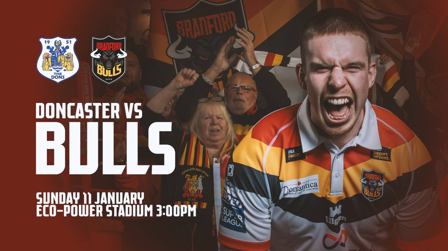 Tickets for our pre-season fixture against Doncaster RLFC on Sunday 11th January (Eco-Power Stadium, 3:00pm) are now available from the Bradford Bulls Team Shop.