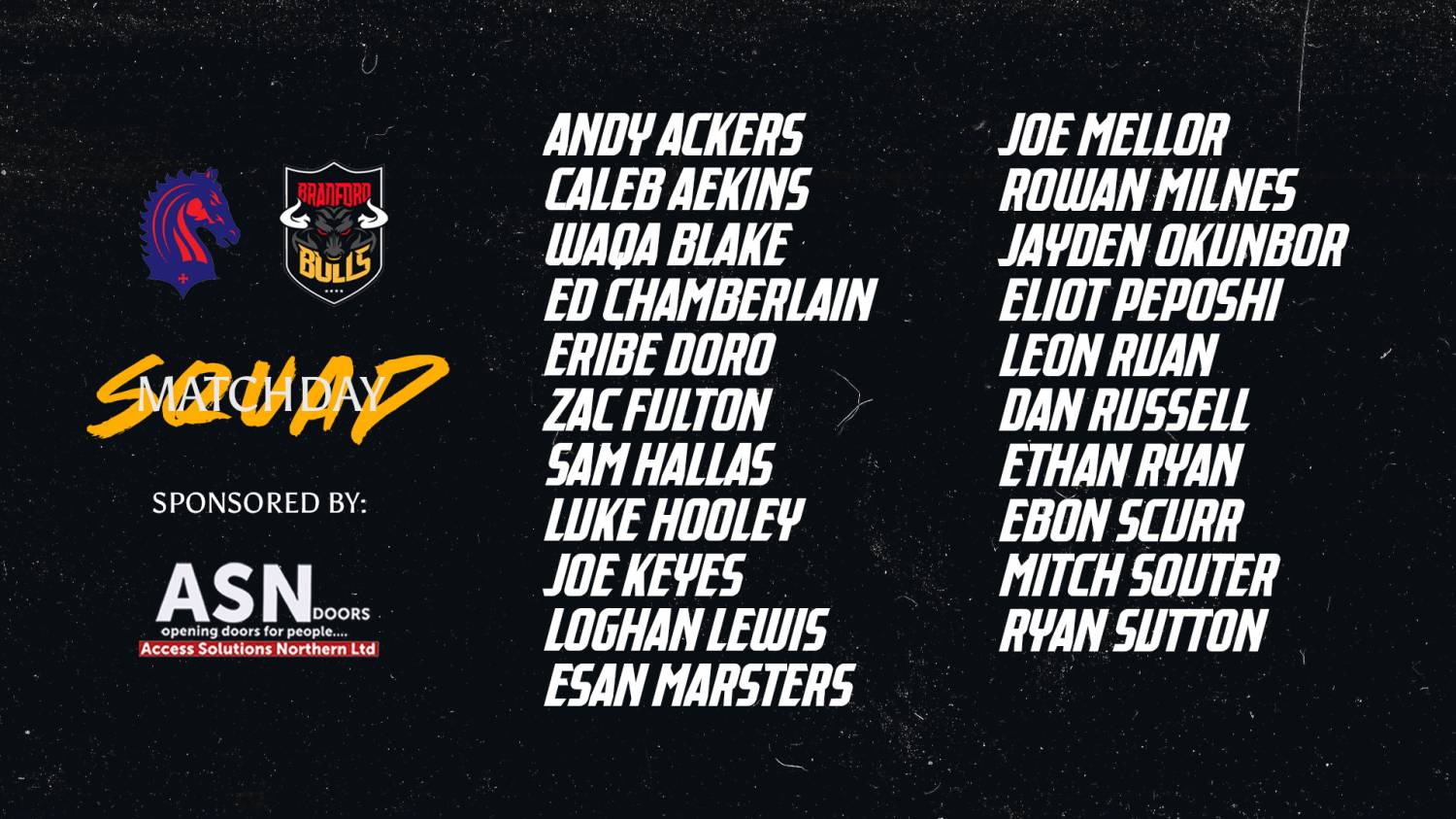 Bradford Bulls Head Coach Kurt Haggerty, sponsored by Sandy & Richard Monro, has named his ASN Doors 21-Man Squad for Sunday's Betfred Challenge Cup clash with London Broncos at the Cherry Red Records Stadium, 3:00pm.