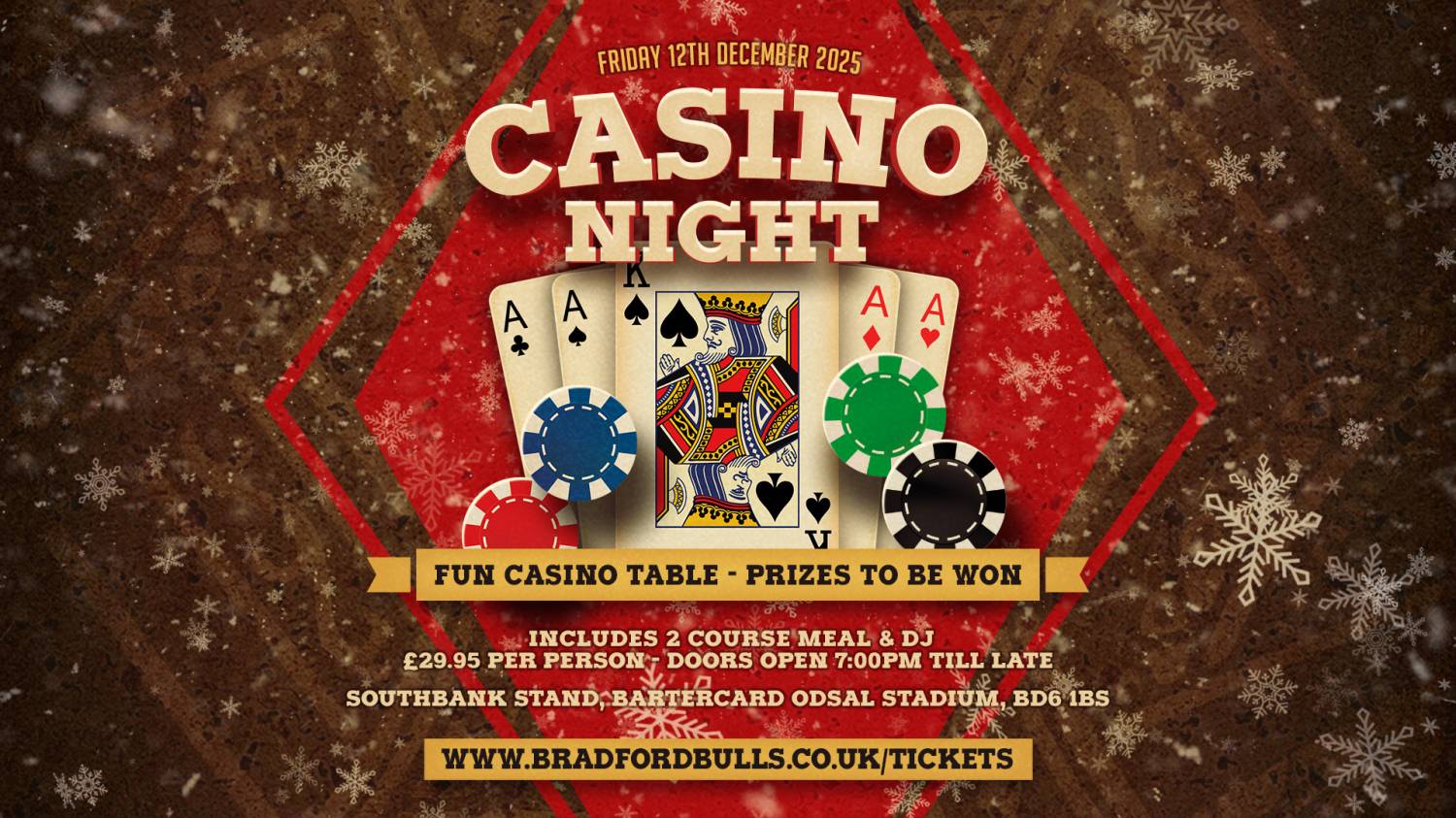 Looking for the perfect way to celebrate the festive season? Mark your calendars because Friday, 12th December 2025, promises an evening of excitement, entertainment, and elegant dining at the Bradford Bulls Casino Night!