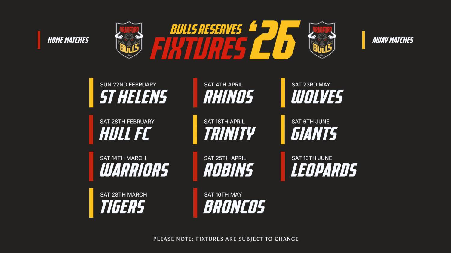 Bradford Bulls are delighted to reveal our fixtures for the upcoming 2026 Reserves season!