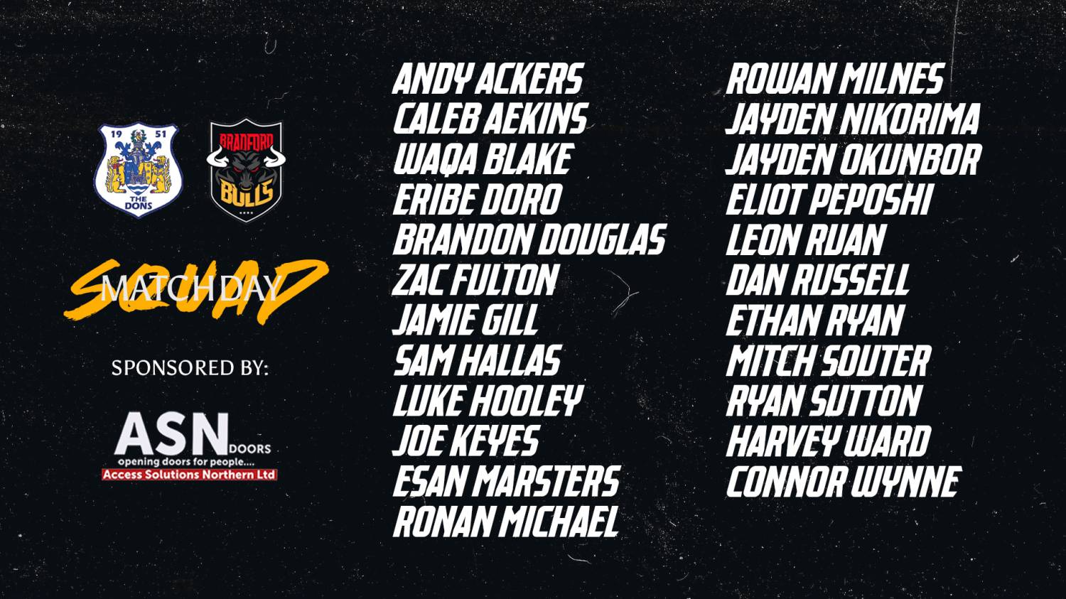 Bradford Bulls head coach Kurt Haggerty, who is sponsored by Sandy & Richard Monro, has named his ASN Doors 23-Man Squad for Sunday’s trip to the Eco-Power Stadium to face Doncaster (3:00pm).