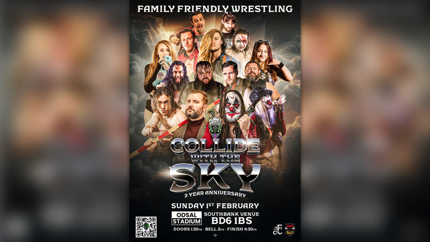 Set within the iconic Southbank Venue at Bartercard Odsal Stadium, Collide With The Sky brings together a stacked roster of Planet Wrestling favourites and rising stars, all ready to clash under one roof. From high-flying action to hard-hitting battles and outrageous personalities, this anniversary event is designed to thrill fans of all ages.